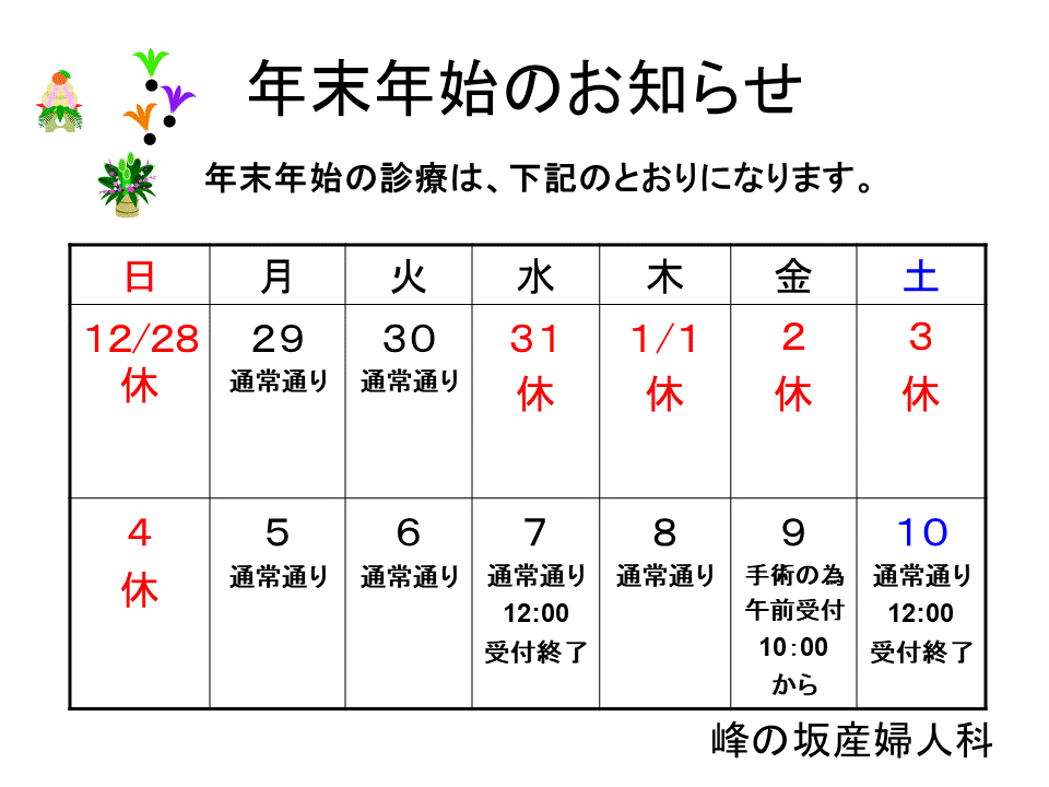 12月受付・診療時間変更のお知らせ